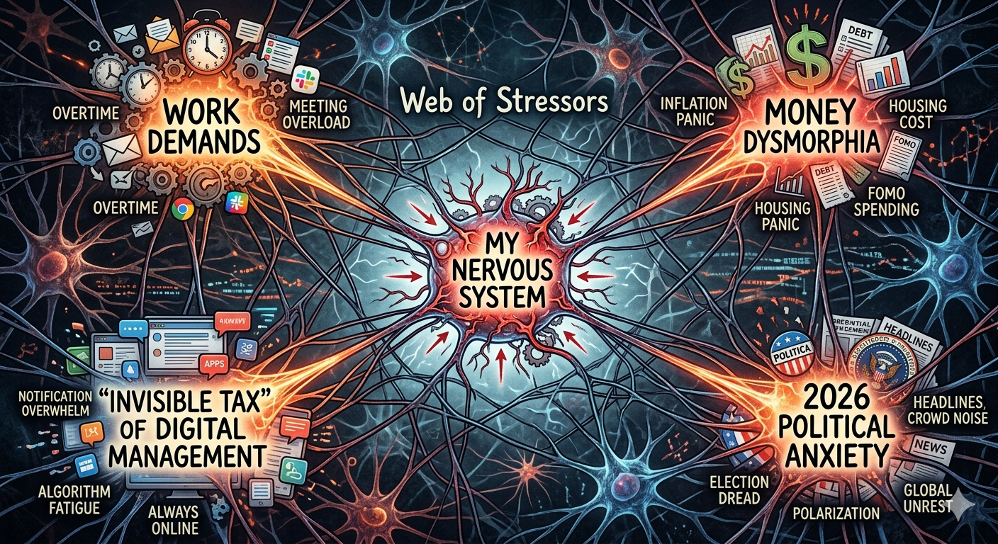 This is compounded by what 2026 economic reports call "The Invisible Tax." Previous generations didn't have to manage the "Cognitive Overhead" of a digital-first existence—automated bills, constant two-factor authentication, side-hustle culture, and the mental load of 24/7 connectivity. This invisible tax drains our mental battery before we even start our workday.